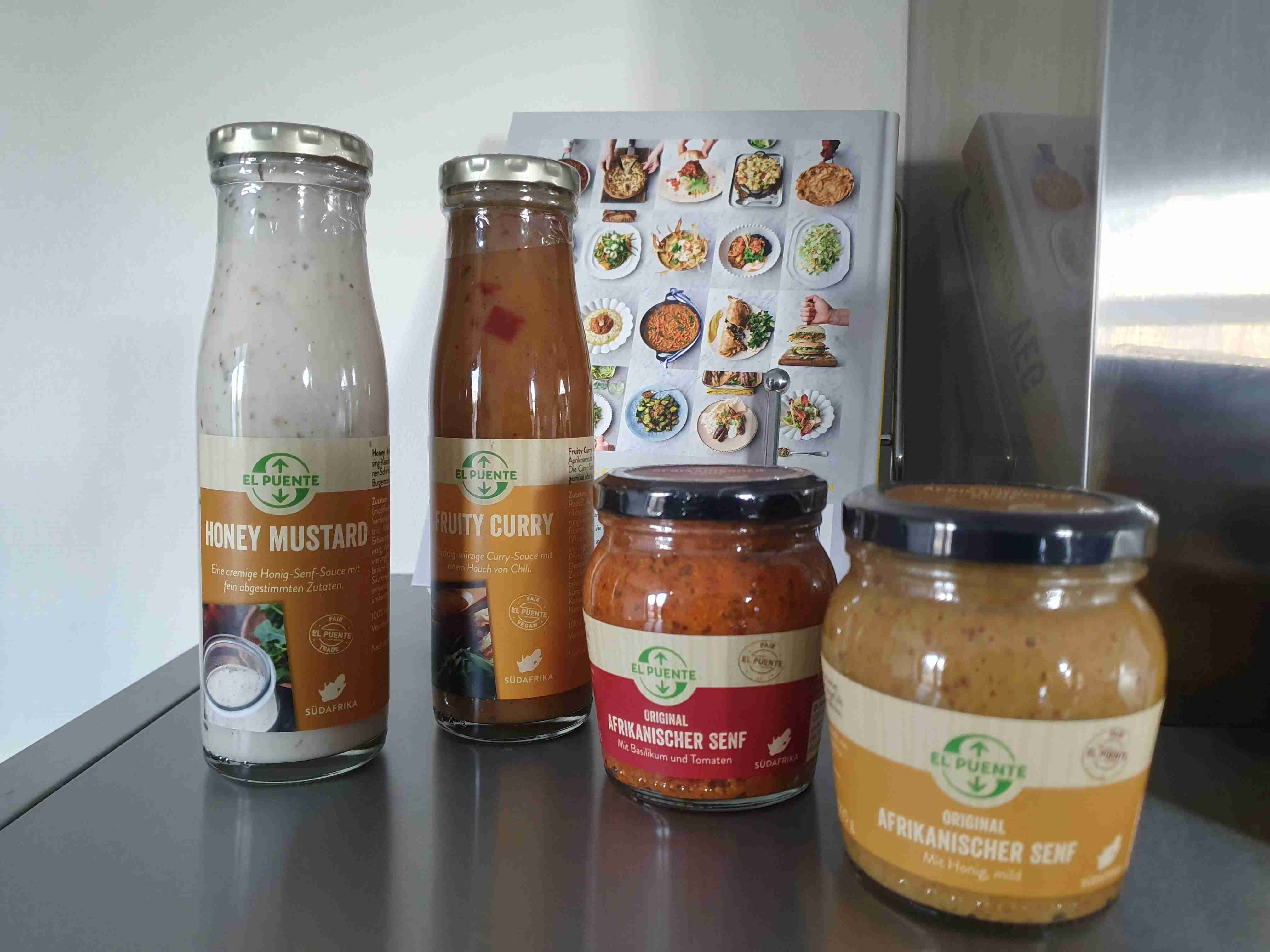 Behalve de kruiden: Karoo, Barbecue, Cape Garden, Coutry Herbs en Orangen Pfeffer verkopen wij de sauzen Honey mustard en Fruity Curry en 2 soorten mosterd, nl een mosterd met Basilicum en tomaten en één met honing. Dat wordt smullen.