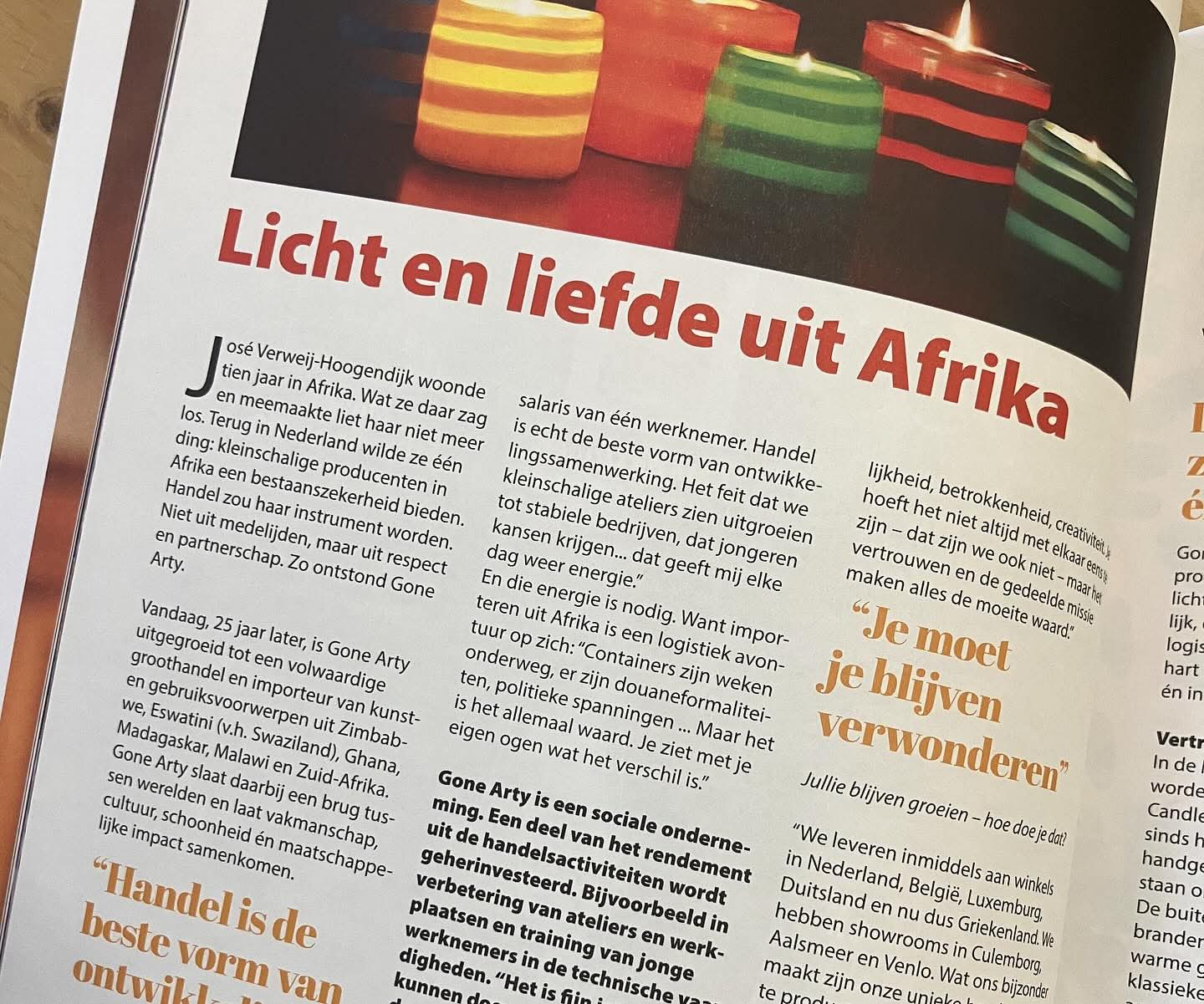 Dit Wereld Magazine staat vol mooie verhalen over ons werk, de makers, de importeurs en de impact die het heeft. Daar willen we de wereld graag over vertellen. Hoe mooi is het dat er zo'n goed manier bestaat om mensen in kwetsbare gebieden te steunen en met hen samen te werken, zodat iedereen daar beter van wordt. Het werkt echt en heeft zoveel impact.