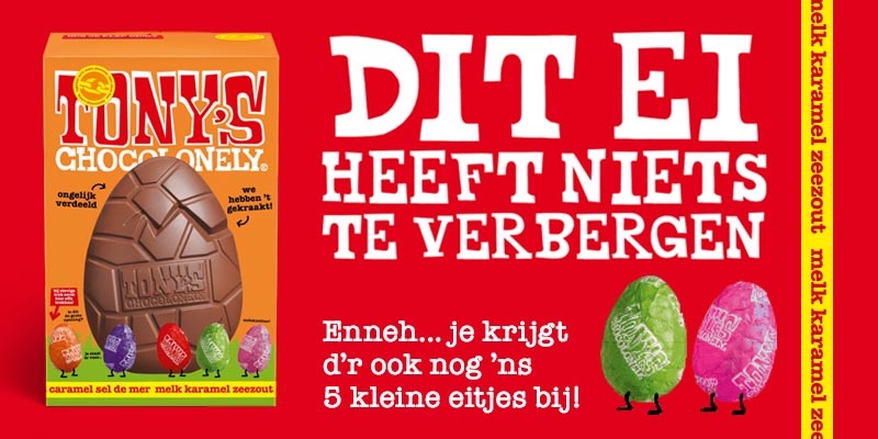 Naast de doosjes met Paaseitjes verkopen wij dit jaar ook het grote nieuwe Tony Paas ei.