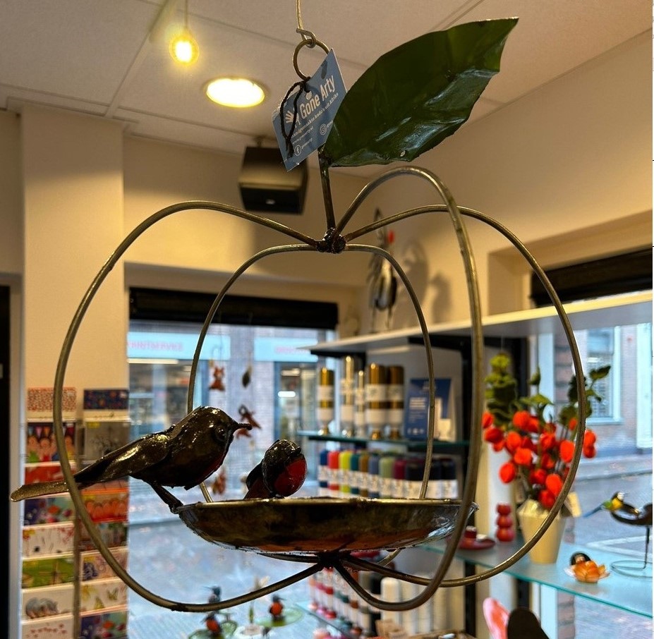 Er zijn verschillende soorten vogels in de winkel van allerlei materialen. Deze leukerds zijn van steen en je kunt ze tegen je tuinhek of balkon afscheiding hangen. De importeur is Sawahasa. U kent onze vogels van scrap metaal ( Gone Arty) natuurlijk ook en de vilten vogels (Sjaal met Verhaal), die ook in ons vaste assortiment zitten. Zeer de moeite waard om een kijkje te komen nemen.