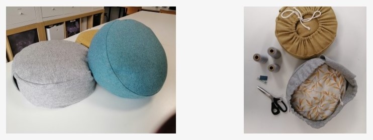 Deze (meditatie)kussens zijn gemaakt van restmaterialen. De buitenkant komt van reststroken hoge kwaliteit meubelstof en het binnen kussen is gemaakt van overgebleven sample stoffen. Medewerkers van het sociale naaiatelier Naald&Draad maakt er prachtige meditatiekussen van.