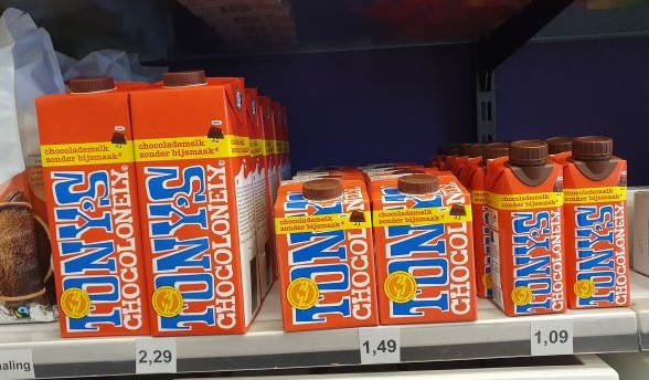 Njam njam, dit moet je eens proeven, (h)eerlijk chocolade melk van Tony Chocolonely. Ze is verkrijgbaar per liter, halve liter en handig voor onderweg de 250ml variant. Kom hem snel eens proeven, want hij is de moeite waard ....