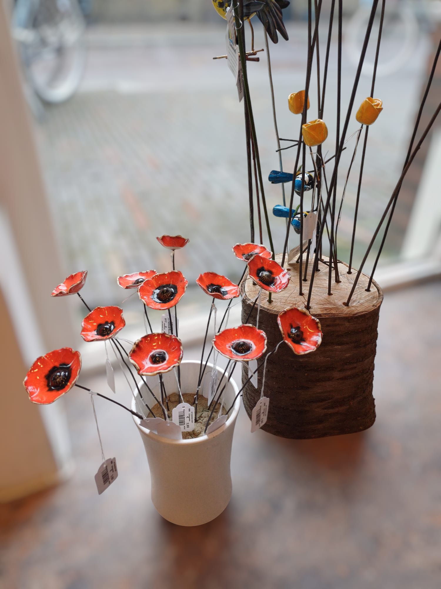 De klaprozen komen uit Litouwen van een project, waar kansarme mensen onder begeleiding van kunstenaars deze keramieken klaprozen maken. Of kiest u voor deze metalen hyacinten tuin (pot) stekers.