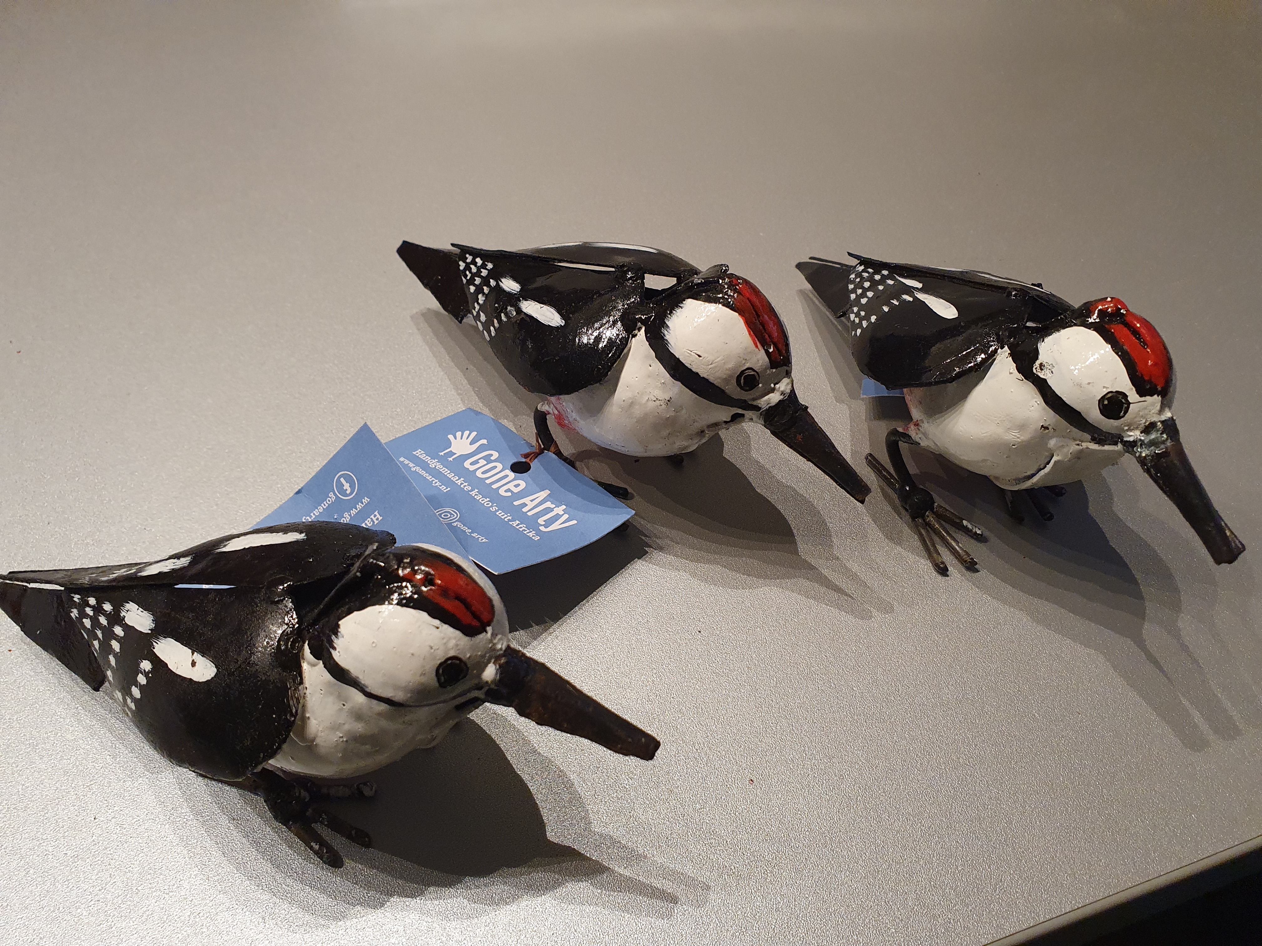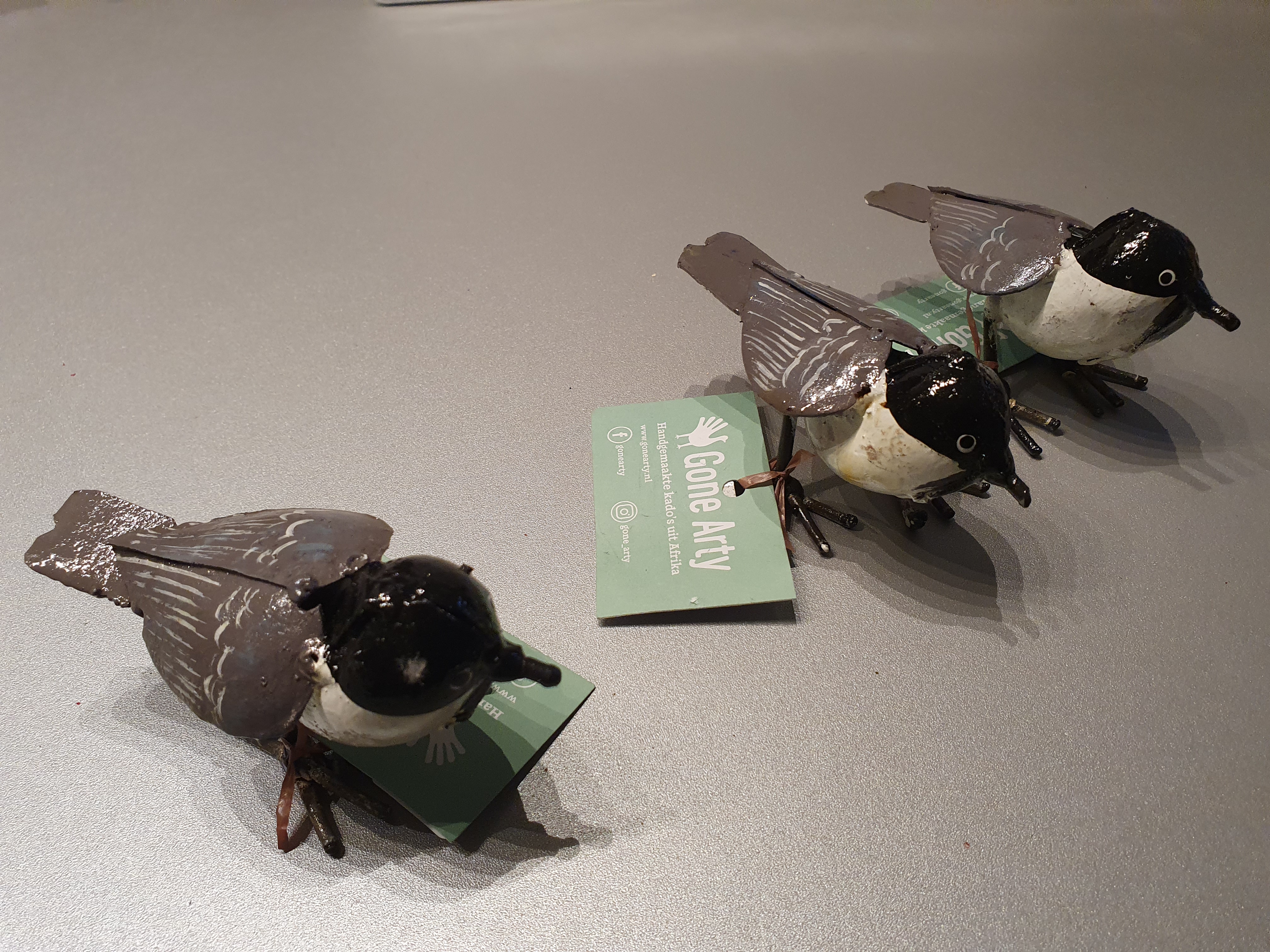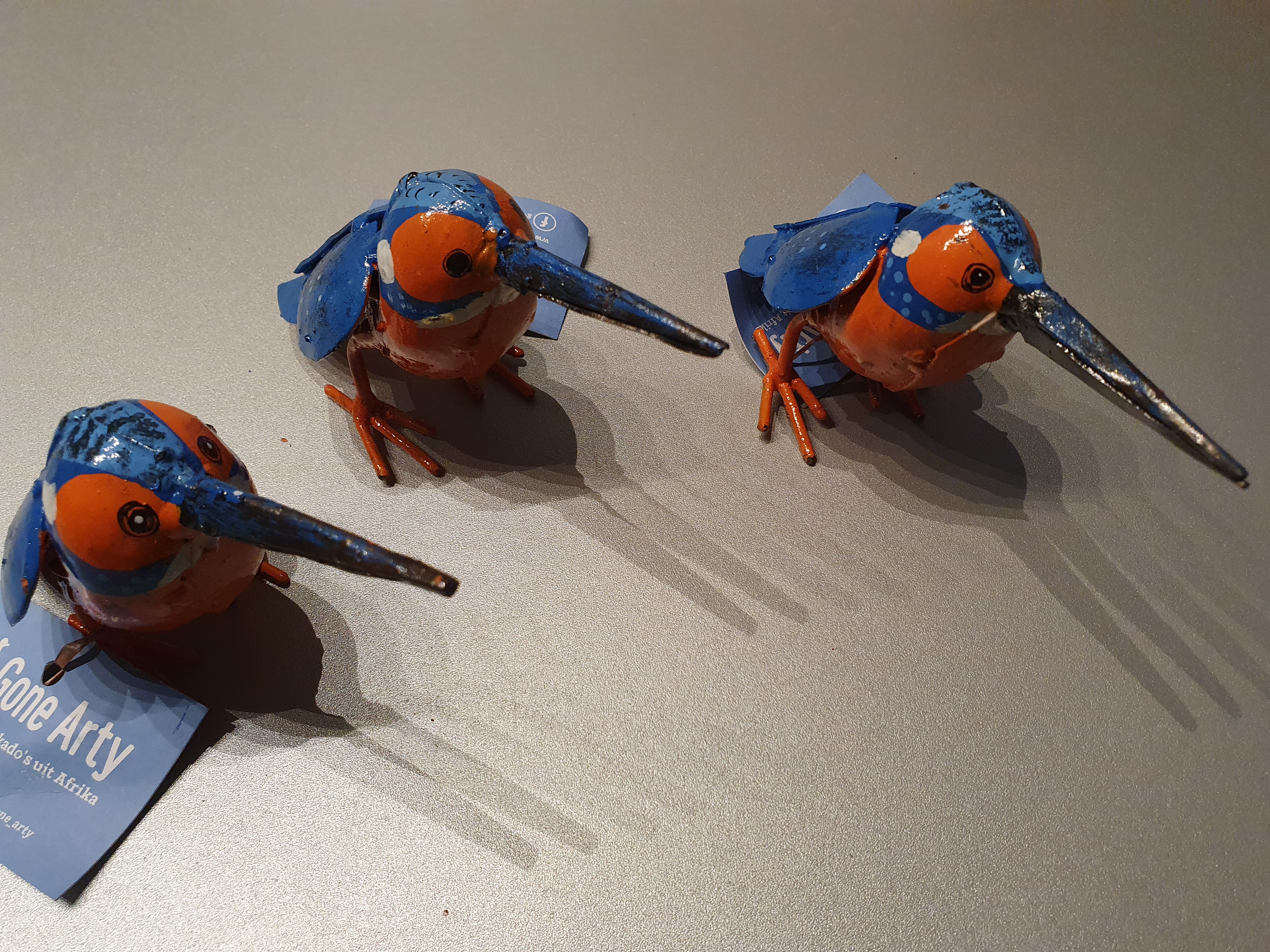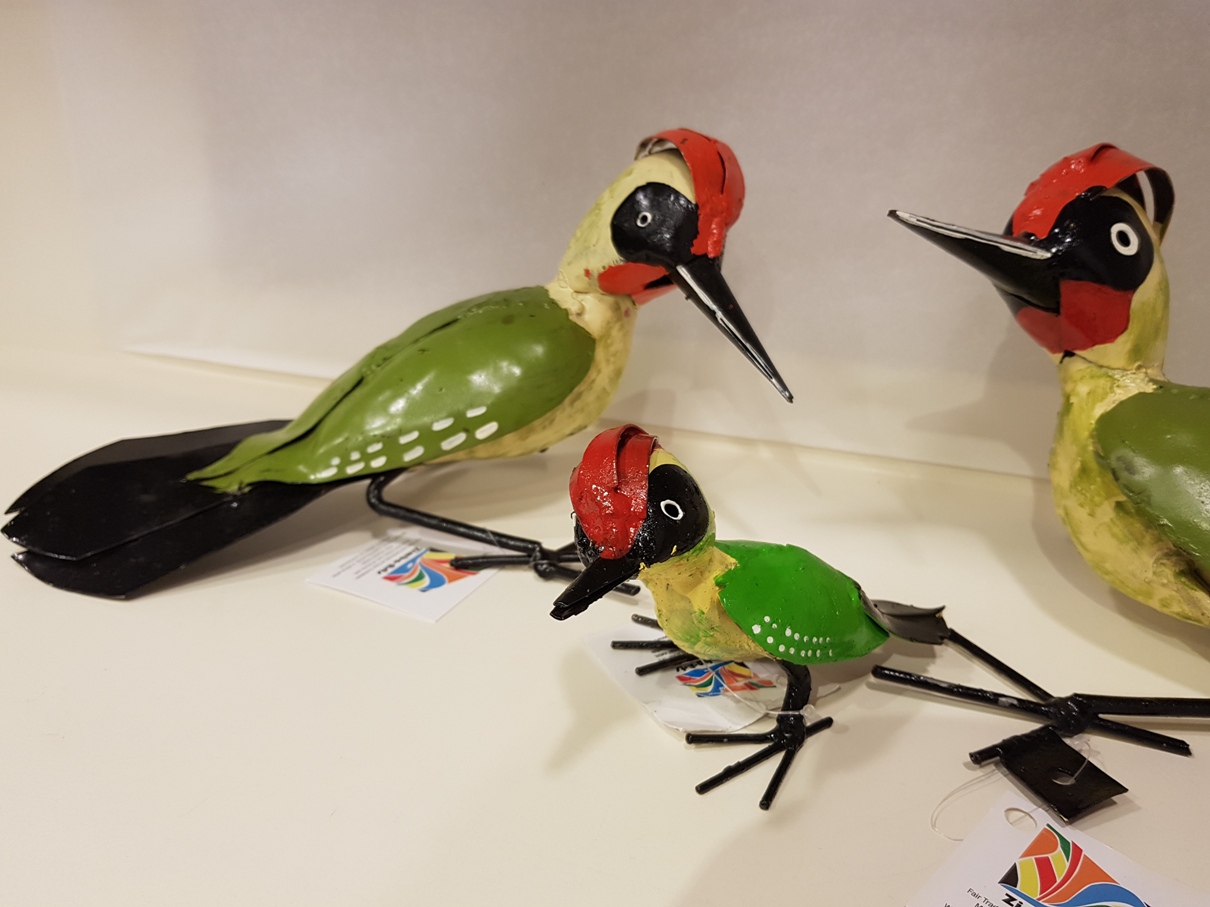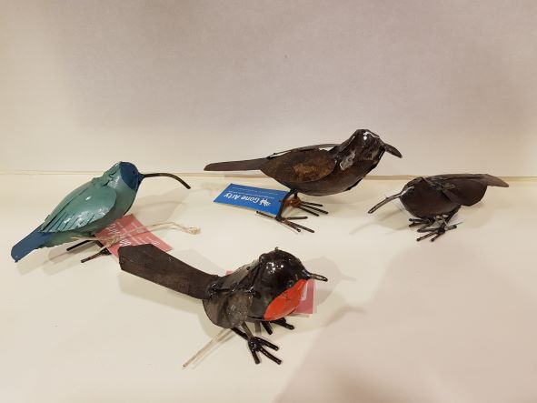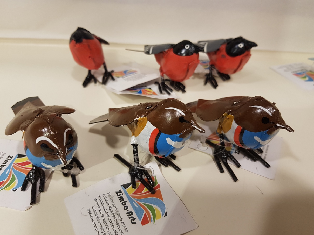 Het is weer een gezellige boel in onze tuinen en op je balkons. Mochten ze wat minder aanwezig zijn, er zijn weer veel roodborstjes, vinken, mezen, ijsvogels, mussen, kwikstaartjes en zelfs de kievit, grutto en wulp in onze in de winkel gespot. Allemaal gemaakt van restjes metaal en gemaakt door onze producenten in Zimbabwe. Het zijn stuk voor stuk pareltjes en maken zo gezellig in huis, tuin of op je balkon. Wat zo leuk is, ze vliegen niet weg ....