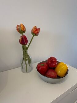 Sjaal met een verhaal vind ik echt geweldig. Ik ben gek op vilt en heb dan ook een aantal producten in huis, zoals de tulpen en de druifjes.