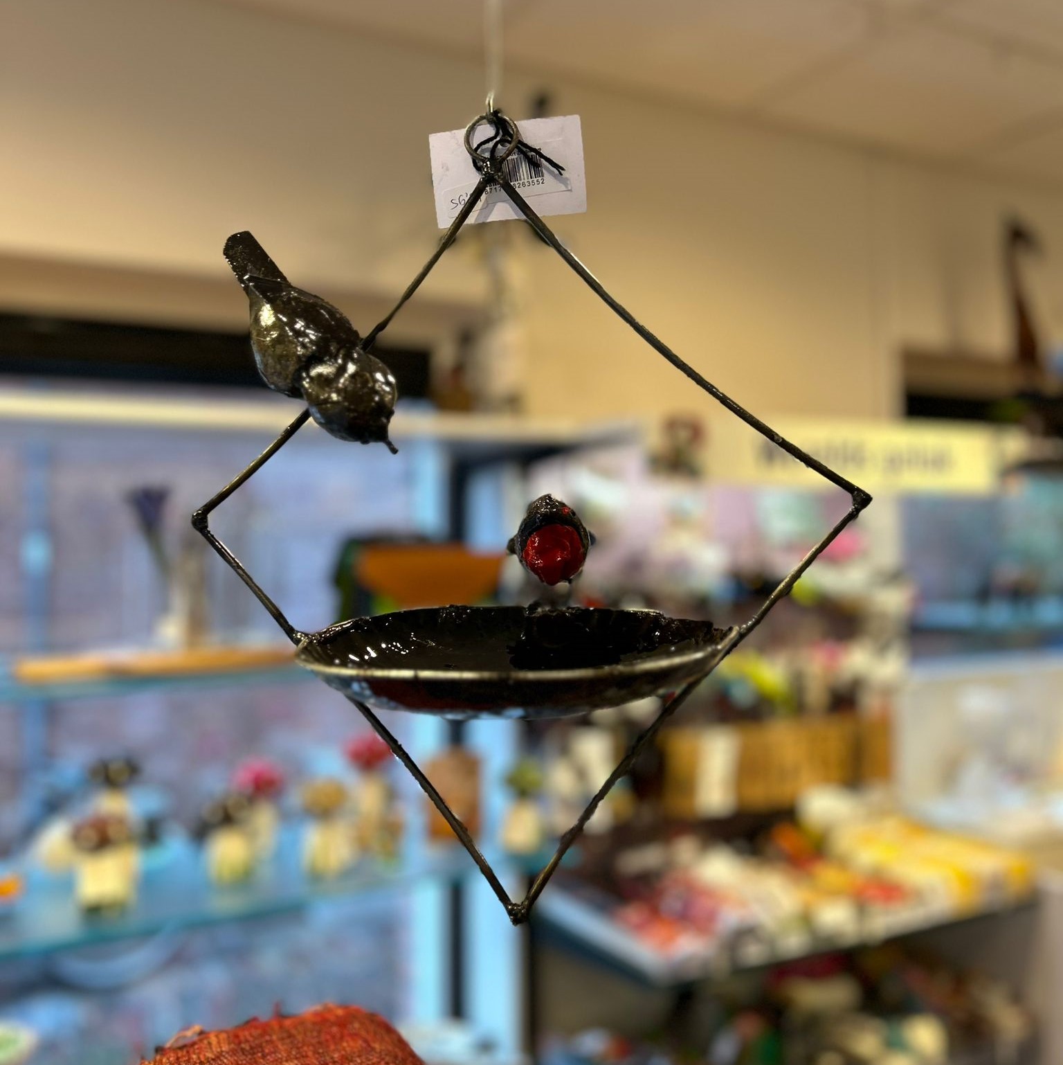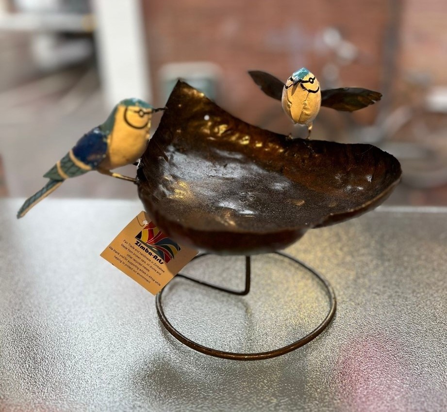 De vogelvoederbakken zijn handgemaakt in Zimbabwe. Ze zijn gemaakt van oude olievaten, oude auto’s of andere restmaterialen. Op deze manier produceren zij hun producten met respect voor het milieu. Onze importeurs betalen niet alleen een faire prijs voor de artikelen, maar begeleiden de ondernemers ter plaatse. Denk hierbij aan veilig werken, goede gereedschappen, financiële planning, onderwijs faciliteiten en gezondheidszorg.