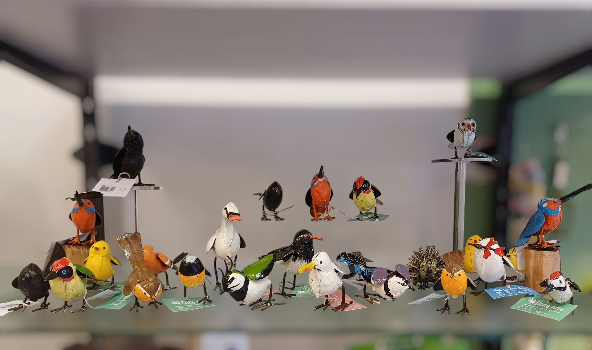 Er zijn verschillende soorten vogels in de winkel van allerlei materialen. Deze leukerds zijn van steen en je kunt ze tegen je tuinhek of balkon afscheiding hangen. De importeur is Sawahasa. U kent onze vogels van scrap metaal ( Gone Arty) natuurlijk ook en de vilten vogels (Sjaal met Verhaal), die ook in ons vaste assortiment zitten. Zeer de moeite waard om een kijkje te komen nemen.