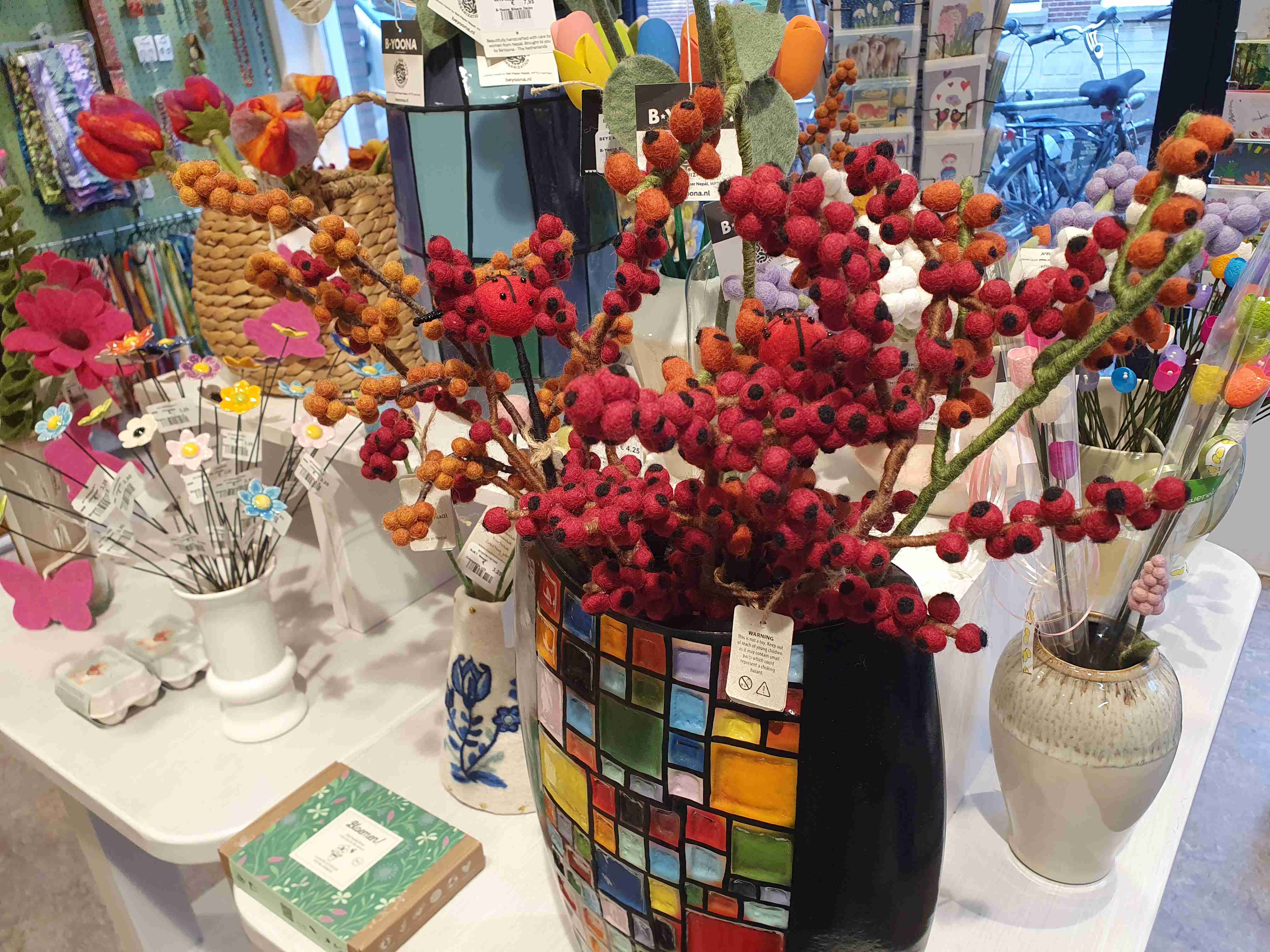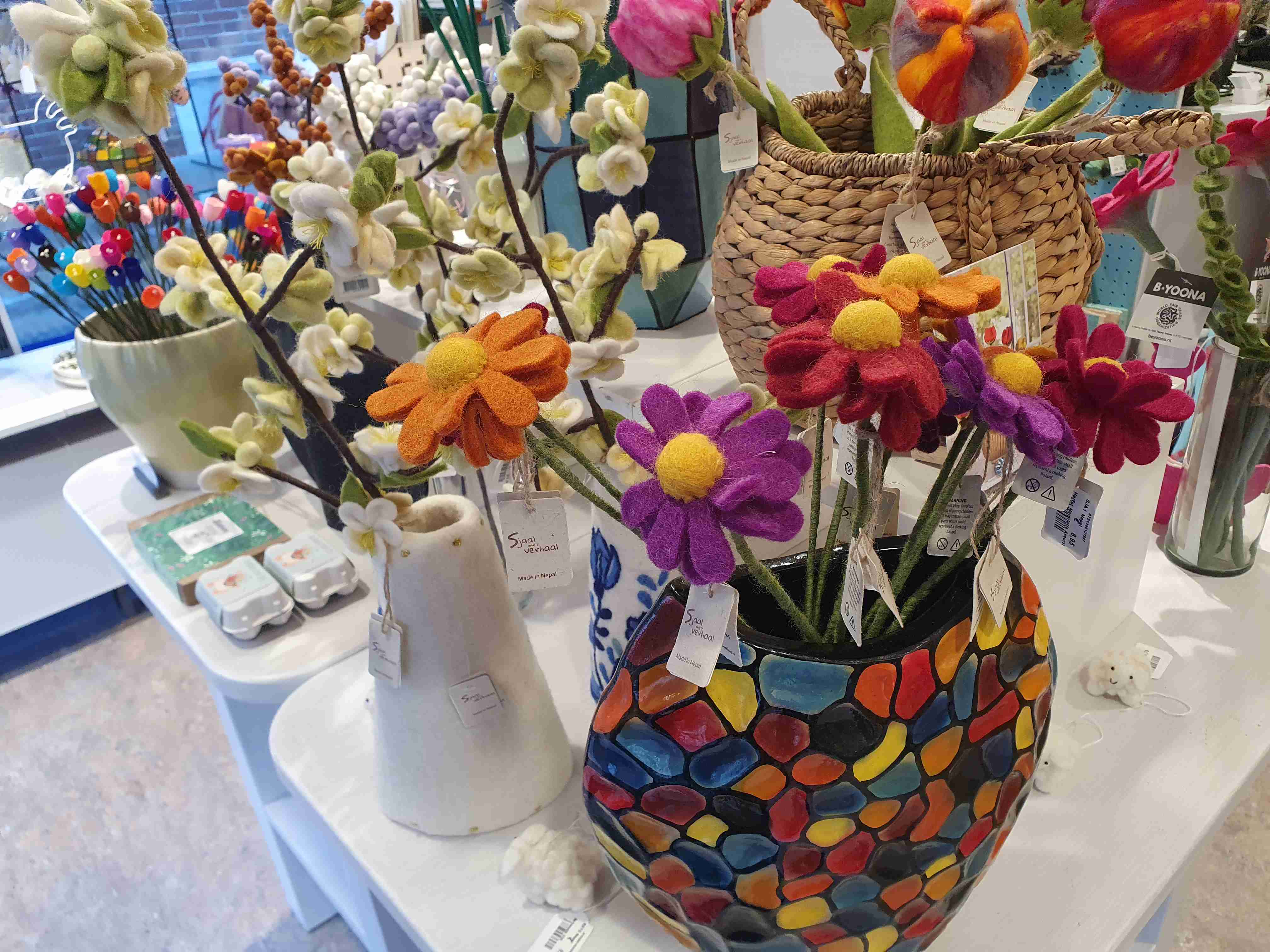 Onder een greep uit onze collectie en deze passen ook prima in onze vazen of mandjes. Stuk voor stuk pareltjes en tot in detail met liefde gemaakt door de damens van Sjaal met Verhaal in Nepal.