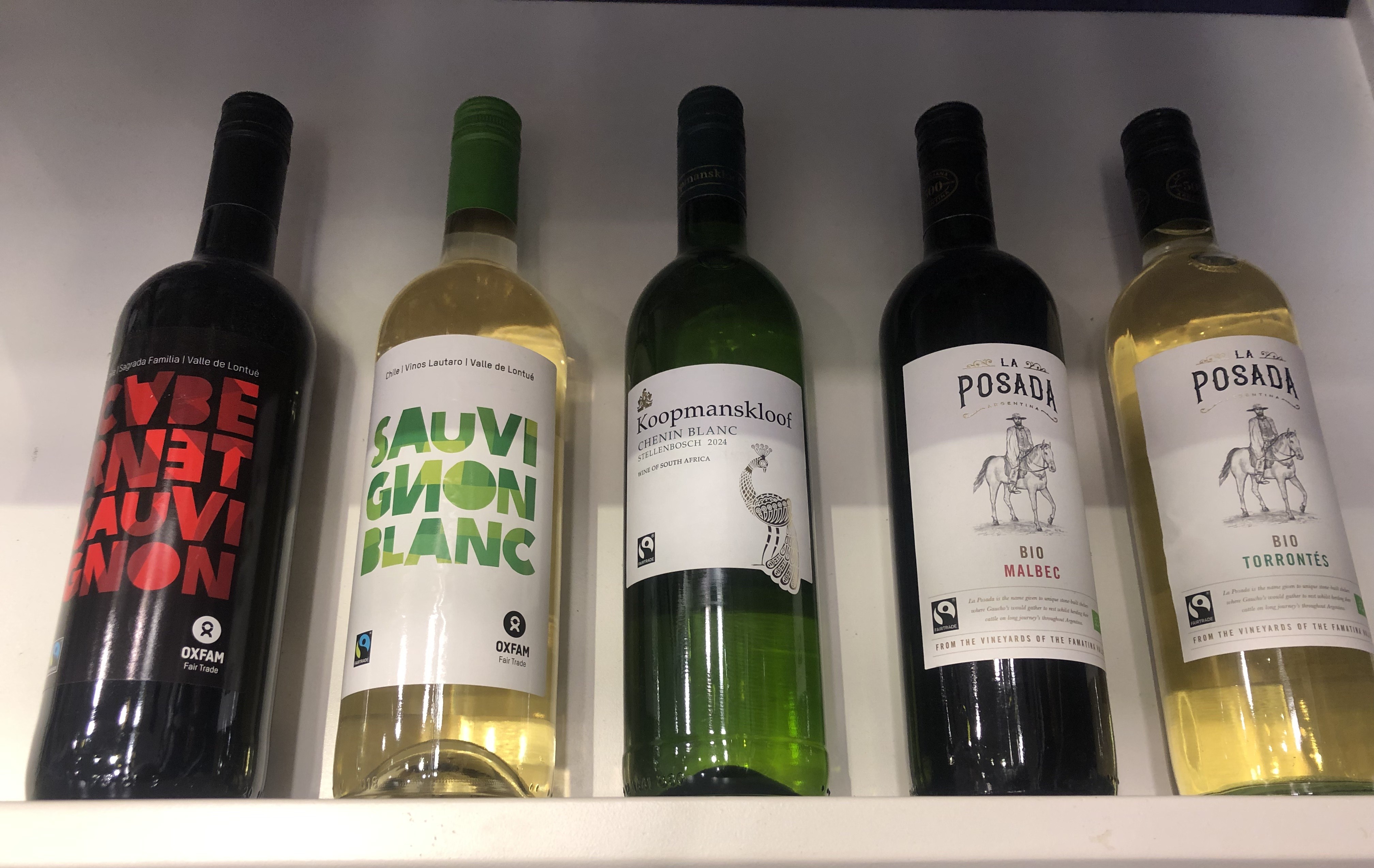 - Sauvignon Blanc van Oxfam Fair Trade uit Chili, fris en fruitig