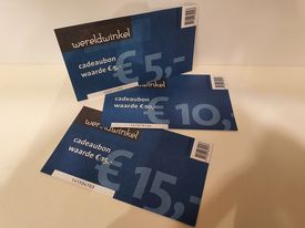 De cadeaubonnen van de Wereldwinkel zijn verkrijgbaar in verschillende waardes.