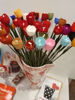 Ik vind onze ruime keuze aan sjaals heel leuk, maar ook de beeldjes en de sieraden. Onze unieke tuinstekers en (gezellige en duurzame) vilten en zijden bloemen mogen er ook zijn. Met de verkoop van onze unieke artikelen helpen we onze producenten en consumenten. Beiden blij!